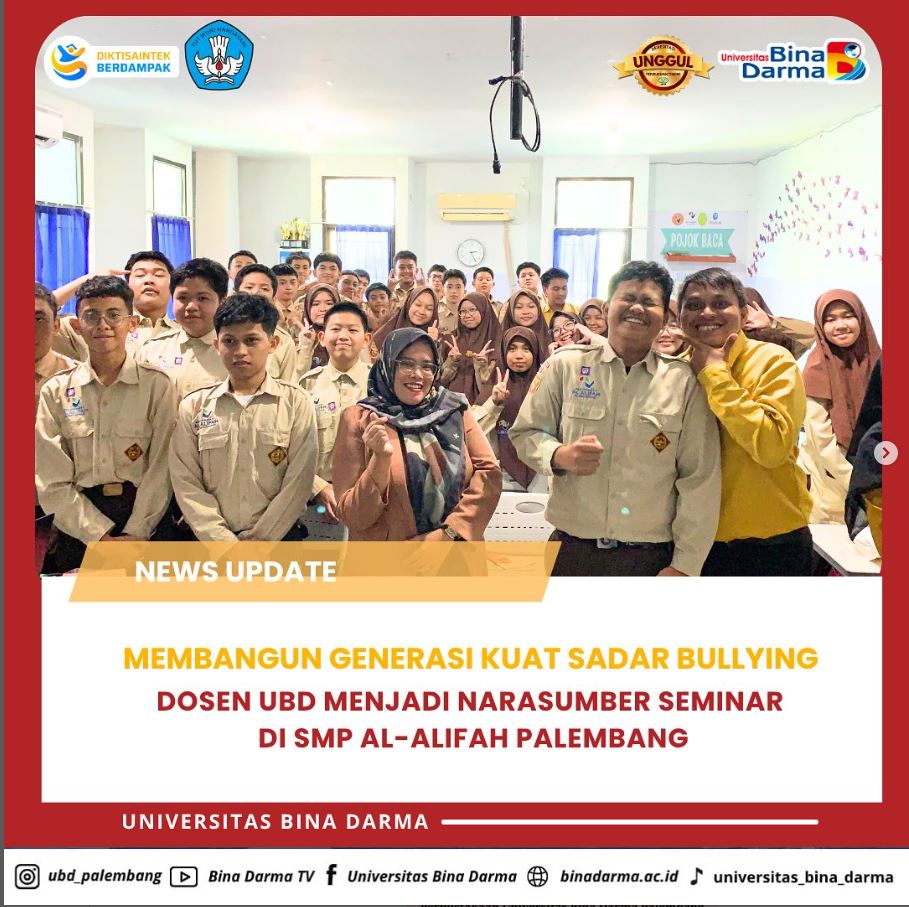 Palembang — Perundungan atau bullying masih menjadi ancaman nyata bagi tumbuh kembang anak dan remaja. Tak hanya melukai fisik, dampaknya dapat menghancurkan rasa percaya diri, mengganggu kesehatan mental, bahkan menghambat prestasi akademik. Menyadari hal tersebut, Universitas Bina Darma bersama Universitas Islam Negeri Raden Fatah Palembang mengadakan