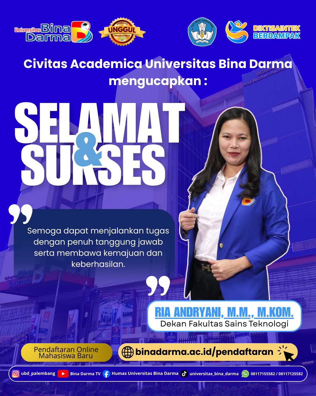 PALEMBANG – Universitas Bina Darma resmi melantik Ibu Ria Andryani, M.M., M.Kom. sebagai Dekan Fakultas Sains Teknologi (FST) yang baru. Ucapan selamat dan doa mengalir bagi dimulainya babak baru di bawah kepemimpinan beliau. Penunjukan Ibu Ria Andryani diharapkan dapat membawa …