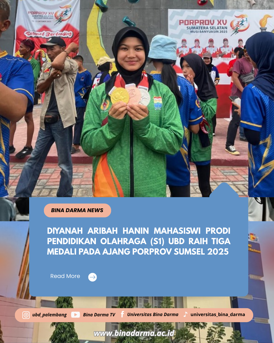 Palembang, November 2025 – Prestasi membanggakan kembali diraih oleh mahasiswa Universitas Bina Darma. Diyanah Aribah Hanin sukses mengharumkan nama universitas dengan meraih tiga medali pada ajang Pekan Olahraga Provinsi (Porprov) Sumatera Selatan 2025, yang diselenggarakan pada 19–25 Oktober 2025. Mahasiswi …