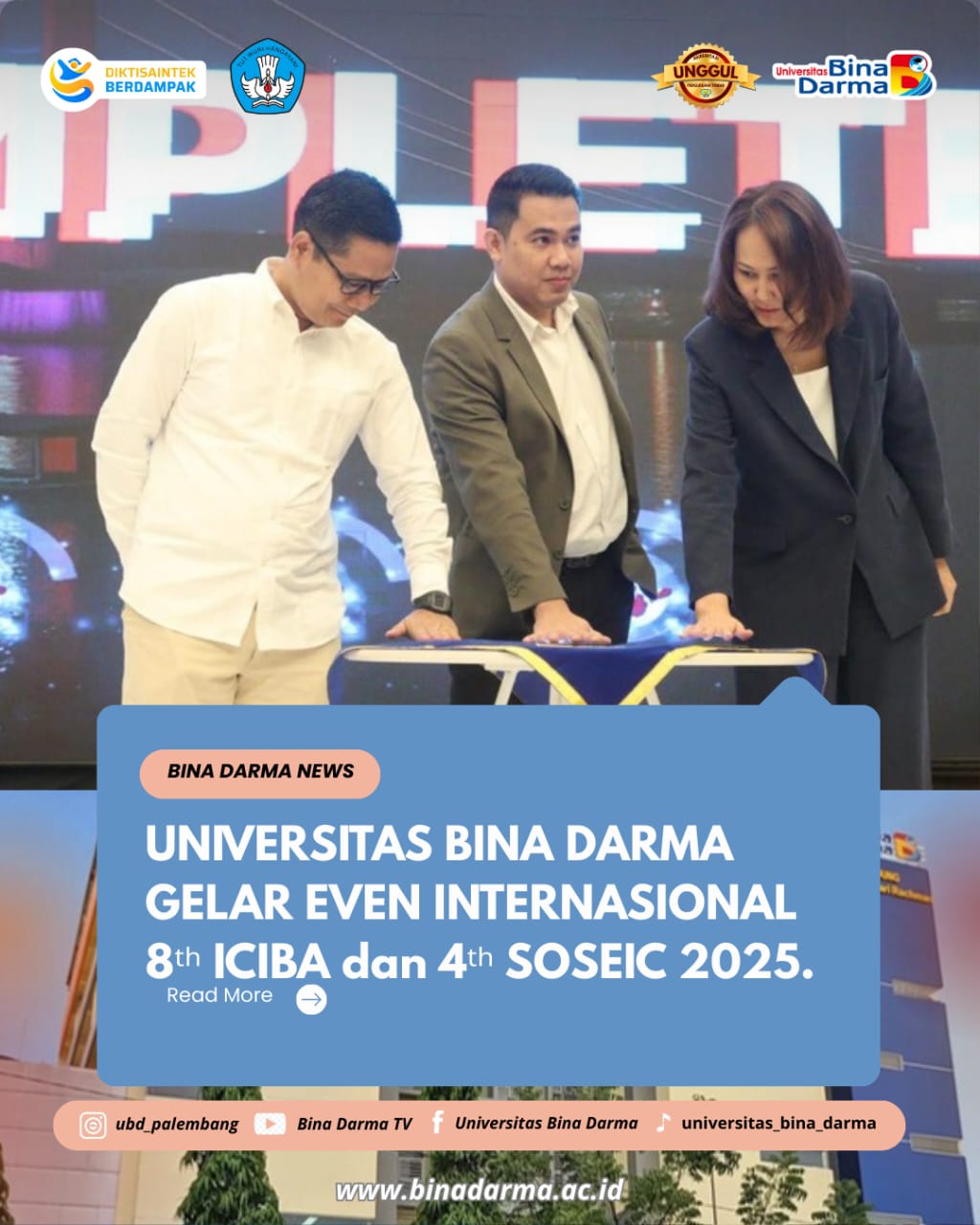 Palembang, November 2025 – Prestasi internasional kembali ditorehkan oleh mahasiswa Universitas Bina Darma. Siti Putri Amalia, mahasiswi berprestasi UBD, berhasil mengharumkan nama kampus dan Indonesia setelah meraih medali perunggu pada ajang Islamic Solidarity Games yang berlangsung di Riyadh pada 17–22 …