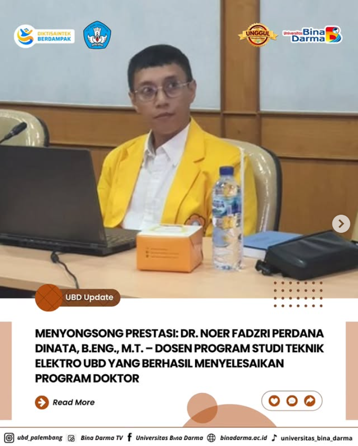 Palembang – Dunia pendidikan teknik di Indonesia kembali diwarnai prestasi gemilang dari salah satu dosen berprestasi, Dr. Noer Fadzri Perdana Dinata, B.Eng., M.T. Beliau merupakan sosok yang tak hanya dikenal sebagai pengajar di Program Studi Teknik Elektro Universitas Bina Darma, …