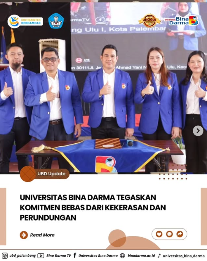 Palembang, 15 Agustus 2025 – Universitas Bina Darma (UBD) mengukuhkan komitmen dalam menciptakan lingkungan kampus yang aman dan nyaman bagi seluruh civitas akademika dengan melakukan penandatanganan pernyataan yang menegaskan dukungan terhadap upaya pencegahan kekerasan seksual, fisik, serta perundungan (bullying). Kegiatan …